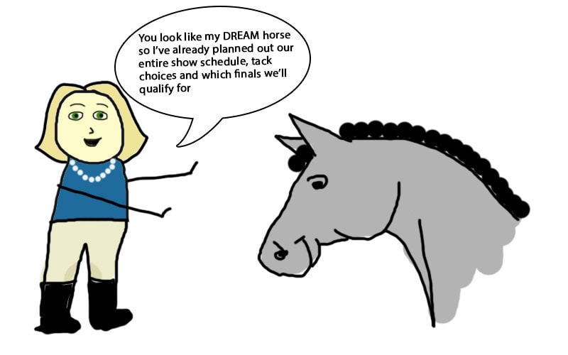 Can I meet a potential new equine friend and just say, “Oh wow. This could be something great!” NO I CANNOT. Instead, I build up all these crazy expectations and then completely devastated when said horse does not live up to the fiction I’ve created.