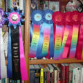 As for special champion ribbons, I ironed out the streamers and placed them in what I’m not calling my “trophy case.” Let’s face it – I have more interest in champion ribbons than I do fine china, so these have a welcome home in the top shelf of my China cabinet alongside my grandfather’s carvings.